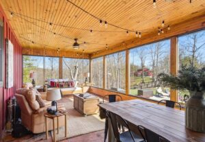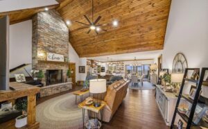 The main-level primary suite features a walk-in shower, allowing for true main-floor living. The home carries a rustic farmhouse aesthetic and is enhanced by a whole-house generator, water purification system, gas heat, and two fireplaces, including a wood-burning fireplace in the great room and a gas fireplace on the screened porch.