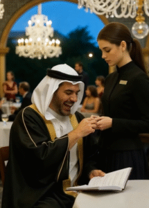 In a grand restaurant filled with music and the fragrance of spices, a sheikh sat surrounded by wealthy guests. The evening was meant to display power and prestige, but behind the scenes, a young waitress quietly carried trays with grace. Few knew that she was highly educated and fluent in several languages, including Arabic, though life’s hardships had brought her to this job while she cared for her ill mother.